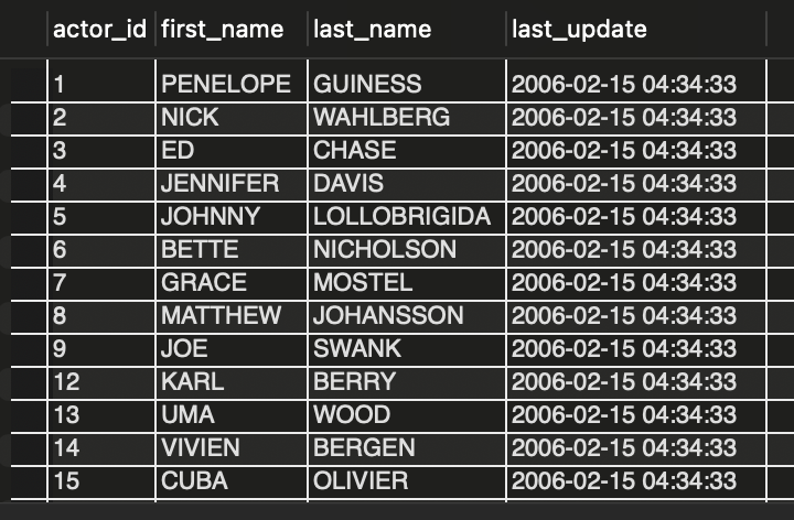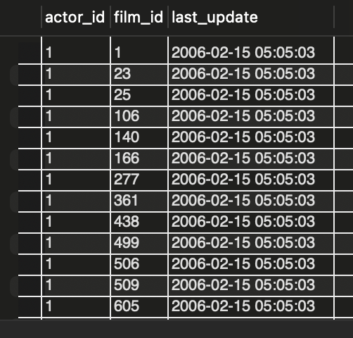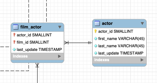 아래 이미지와 같이 테이블 film_actor의 actor_id가 테이블 actor의 actor_id를 참조하고 있다.