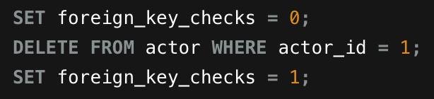 2번 : 쿼리문 위 아래 라인에 foreign_key_checks 를 비활성/활성 해준다.