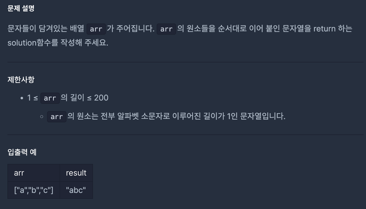 · line 5 : 각 변수의 인덱스의 값을 join하여 변수 answer에 추가해준다.