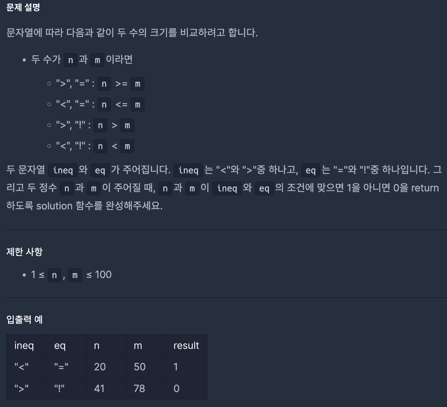 return int(eval(str(n)+ineq+eq.replace('!', '')+str(m)))