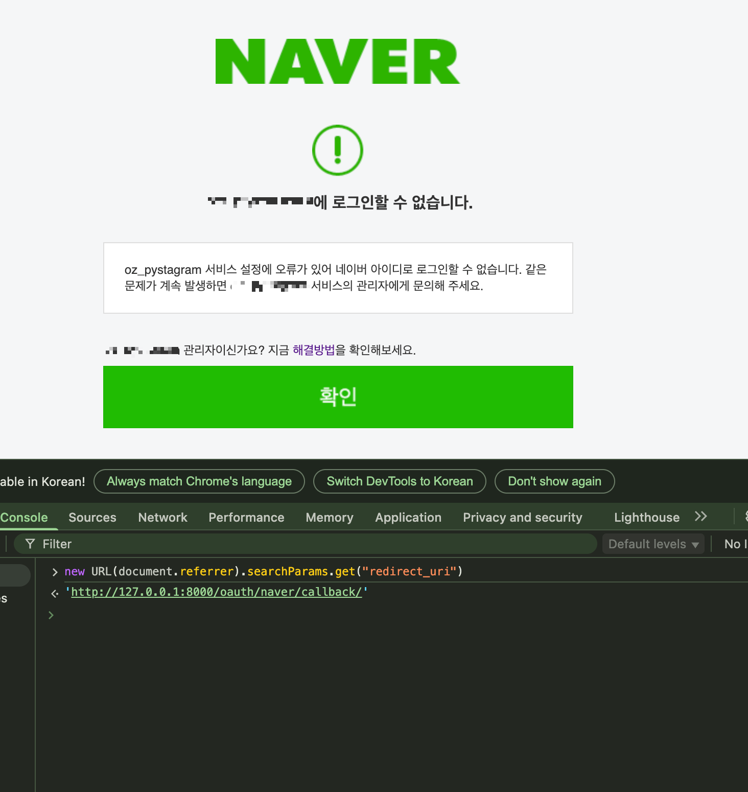 OAuth2.0 네이버 로그인 실습 중 만난 오류