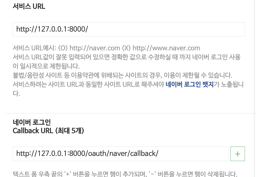 ▣ 네이버 개발자 센터 콜백 URL 설정
