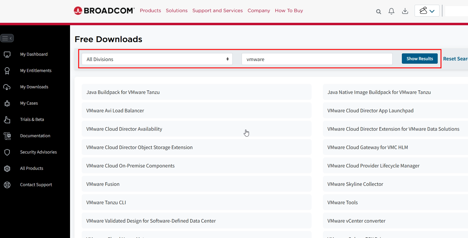 빠른 찾기를 위해 vmware를 입력하고 Show Results를 클릭해준다.