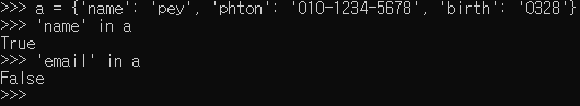 해당 Key가 딕셔너리 안에 있는지 조사하기 - in