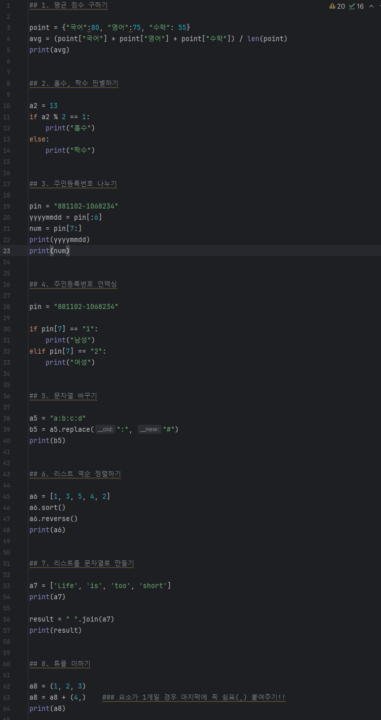 아직까지는 각 자료형들에 내장된 함수를 구분해서 쓰는게 헷갈리네요. 열심히 복습해야겠습니다!