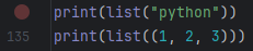 list(iterable) : 반복 가능한 데이터를 입력 받아 리스트로 만들어 리턴합니다.