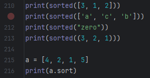 sorted(iterable) : 데이터를 정렬한 후 그 결과를 리스트로 리턴합니다. 리스트 자료형인 sort 함수는 리스트 객체 그 자체를 정렬만 할 뿐, 정렬된 결과를 리턴하지는 않습니다.