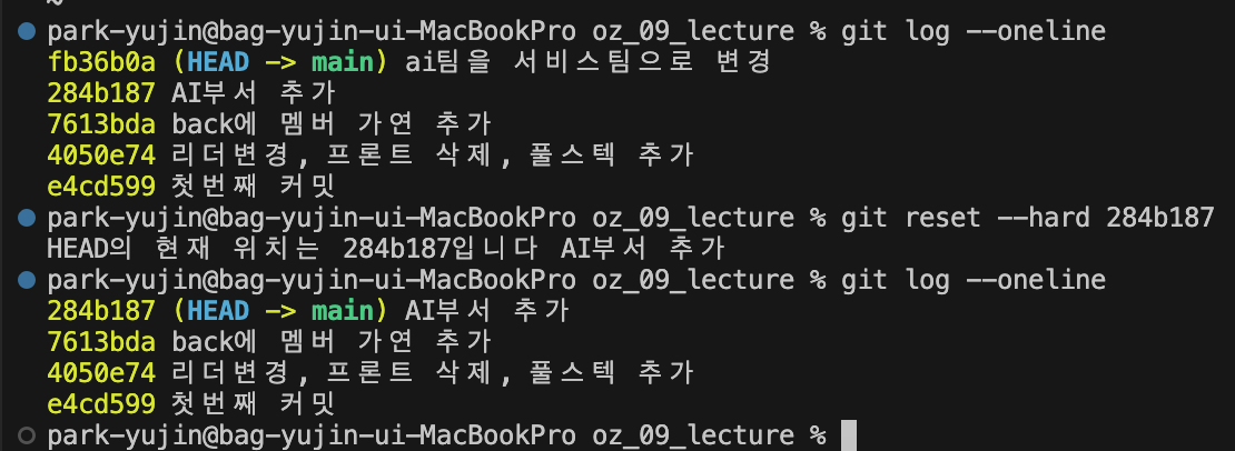 - 그래서 보통 혼자 작업할 때 reset 명령어를 사용함